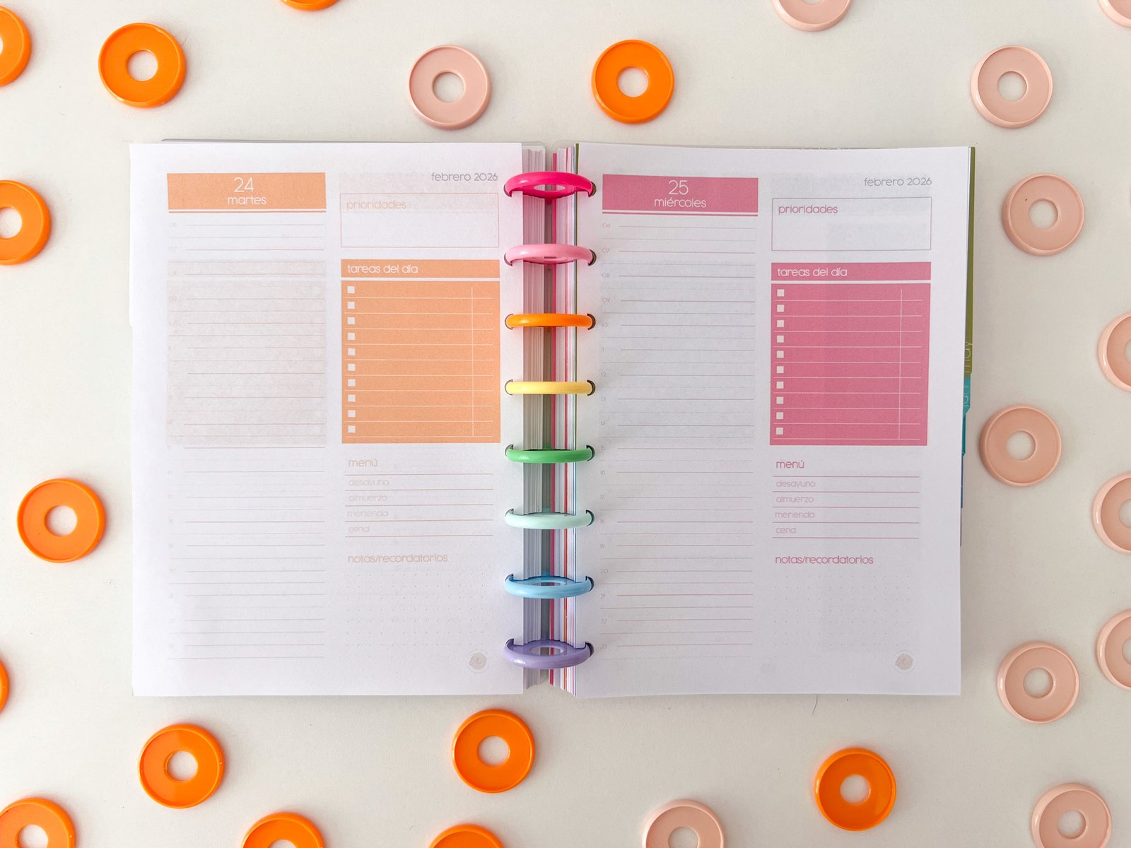 Las agendas Uayeb están anilladas con sistema de discos. Lo que te permite cambiar tus hojas, mezclarlas y agregarle los accesorios y repuestos que quieras.